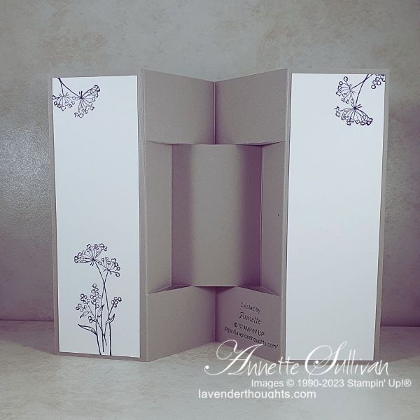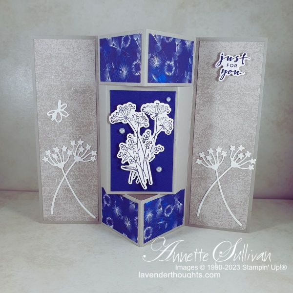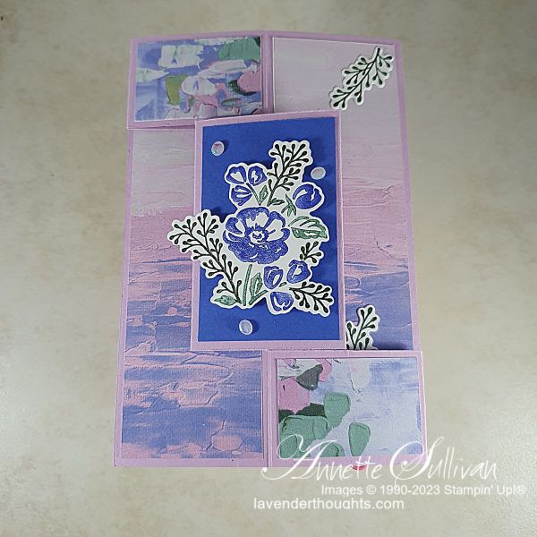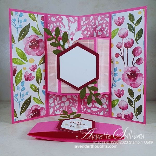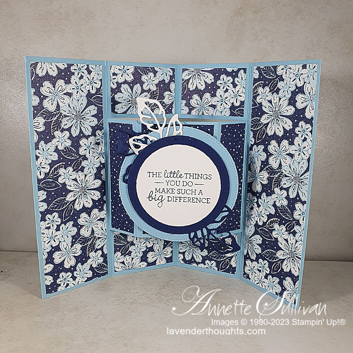 This Flat Flap Fun Fold card uses the Fancy Flora DSP and the Shaded Summer Stamp Set and coordinating Summer Shadows Dies.