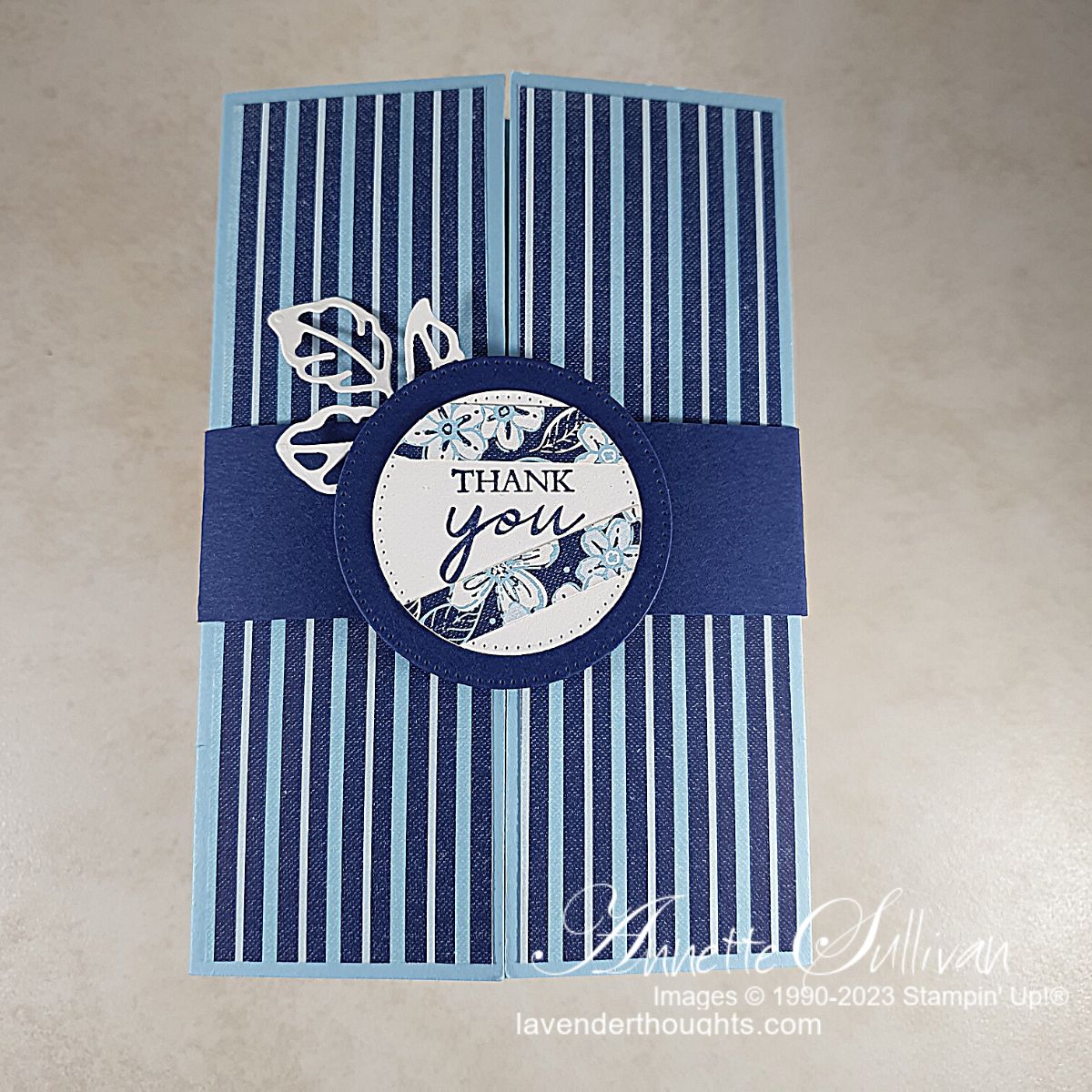 This Gate Fold Pop Up card uses the Regency Park DSP and the Shaded Summer Stamp Set and coordinating Summer Shadows Dies.