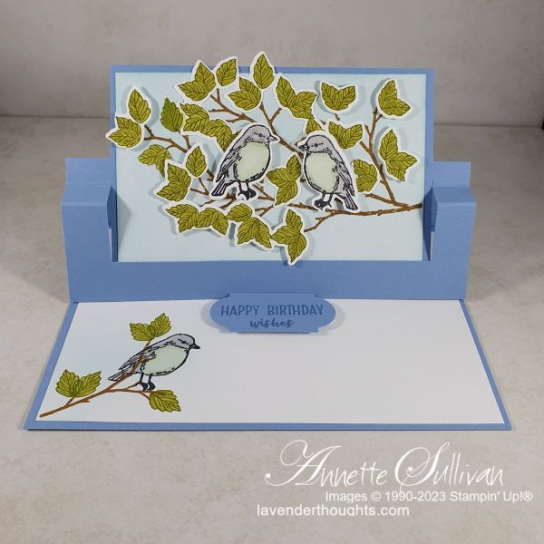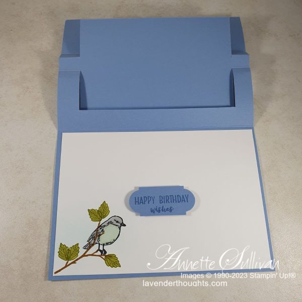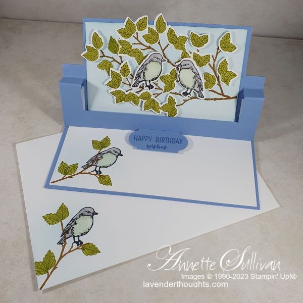 Card 3: This one has no DSP on the front. It uses the Seasonal Branches stamp set and dies with Boho Blue and Basic White cardstock.