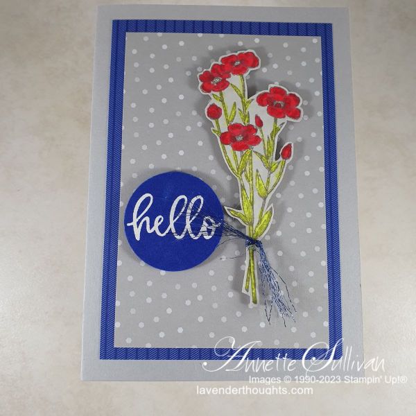 A quick and easy card using Quiet Meadow and Biggest Wish stamps, some colouring with Stampin’ Blends alcohol markers and heat embossing.