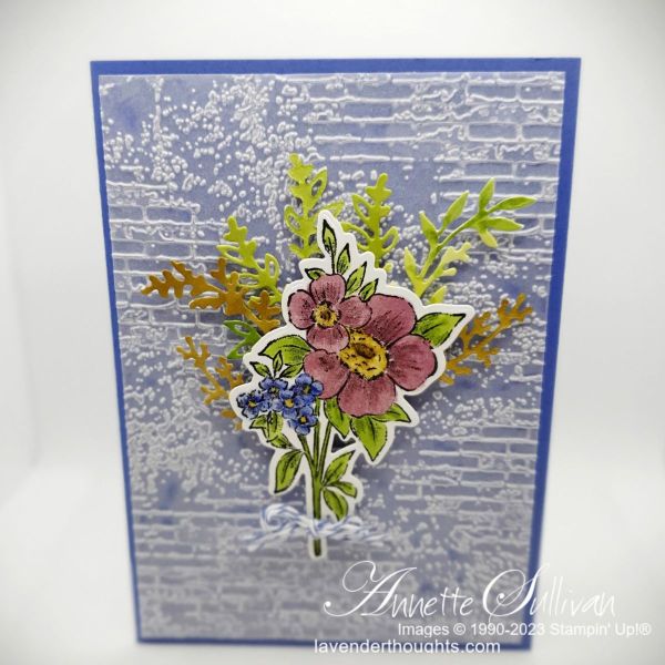 - The card base of Orchid Oasis was layered with a piece of vellum which I embossed with the Exposed Brick 3D Embossing Folder.