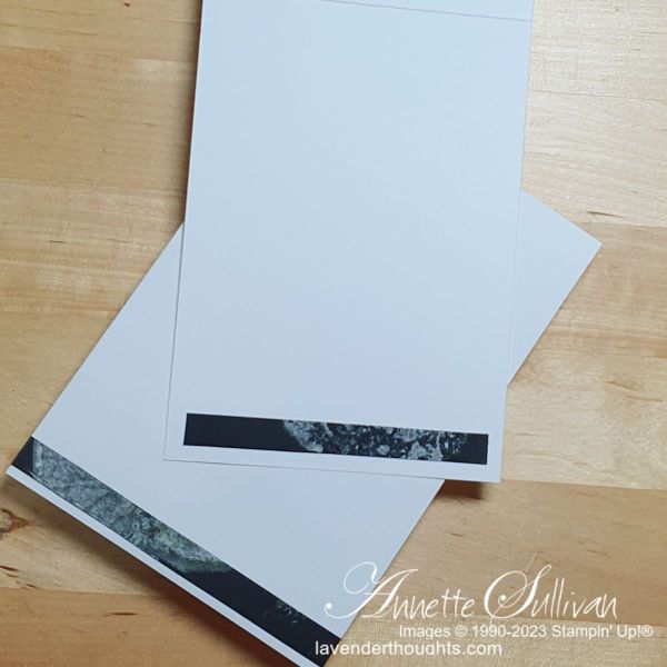 - I added a piece of Silver Metallic Edge Ribbon along the side of the panel and then layered it onto a Thick Basic White card base.