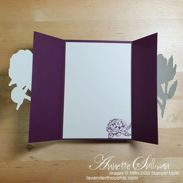 - The secret is to cut the die cut twice and attach to both sides of the front of the gate fold so that they overlap.