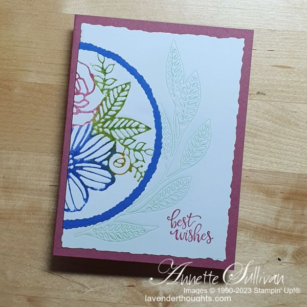 - The large branch die from the same set was used on both cards for the Embossing Using a Die Technique. I inked the die to add very subtle colour to the embossing.