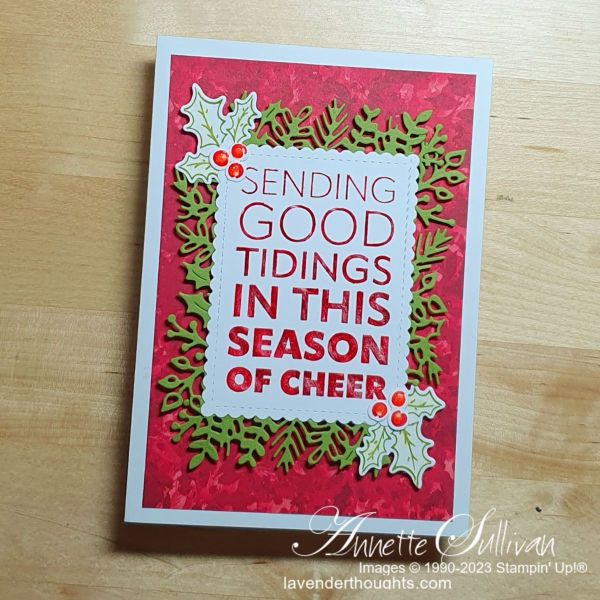 - Ink: Cherry Cobbler, Real Red, Old Olive, Versamark, Memento Tuxedo Black, Crumb Cake