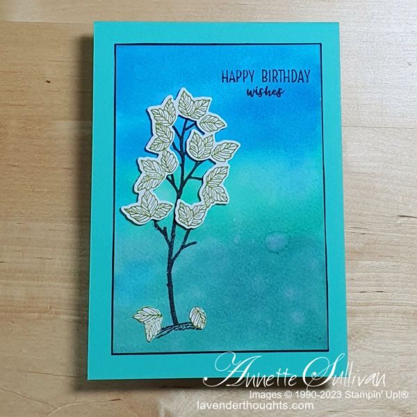 - Stamp tree branch and sentiment with Stazon Jet Black ink.