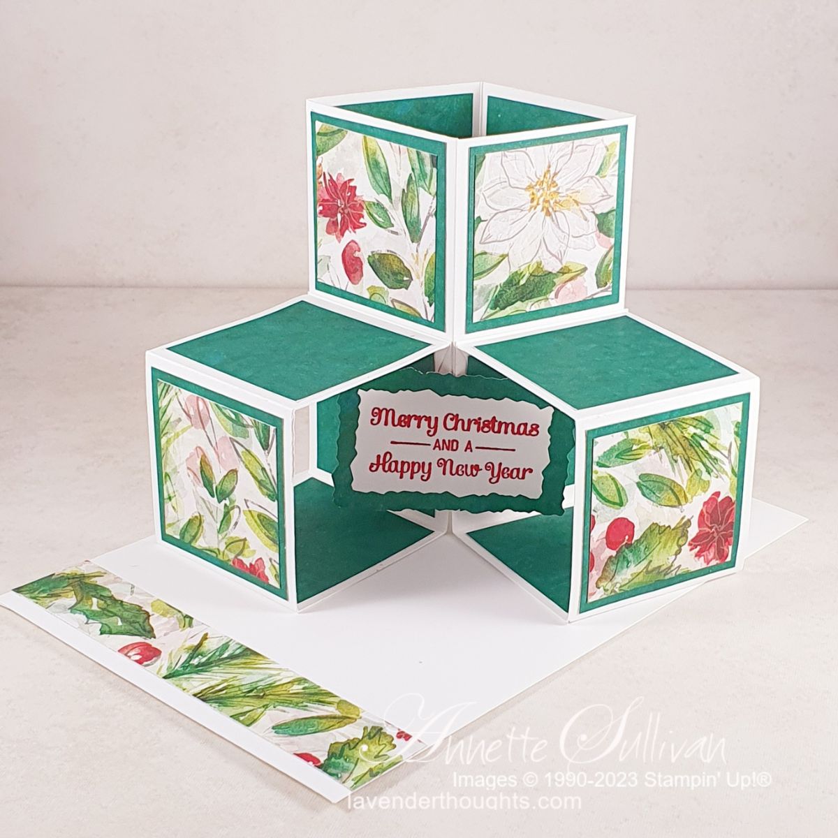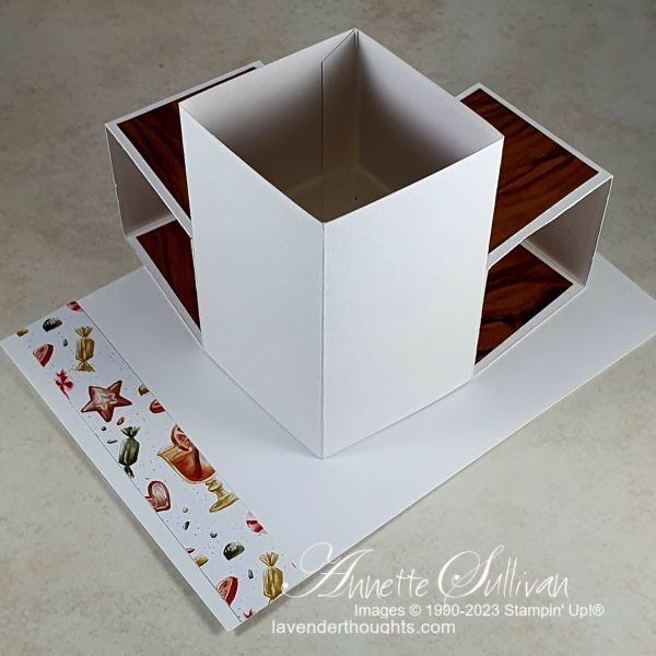 Today I have some Triple Cube Fancy Fold Cards for Christmas. The original idea came from a tutorial at splitcoaststampers.com. I have adjusted the measurements so that the card when folded flat is 10cm x 15cm. It will fit into our C6 envelopes.
