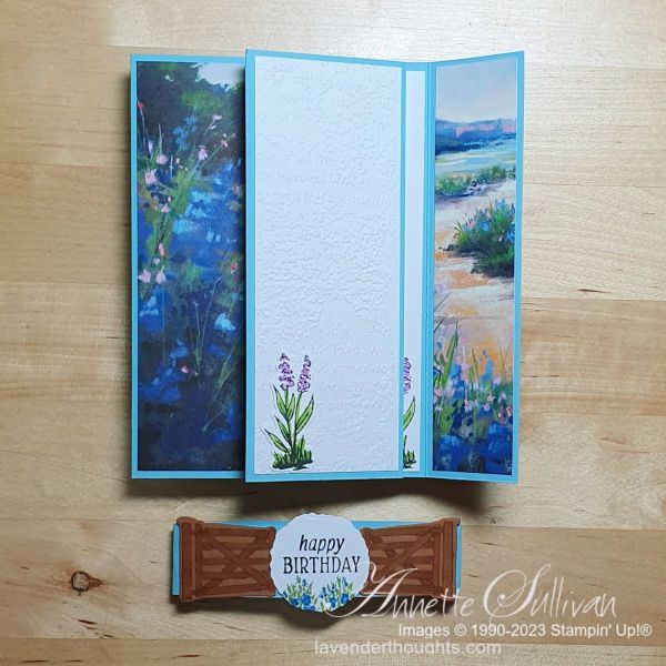 Card 5 is a Triple Fold on a Balmy Blue card base. I have not made one of these for a few years. Full instructions and measurements are in the PDF file. You can download it here.