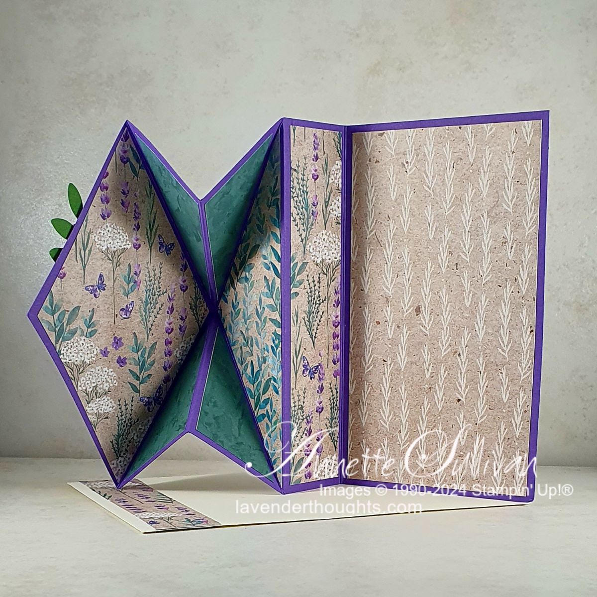 - Cardstock: Gorgeous Grape, Very Vanilla, Garden Green, Perennial Lavender DSP