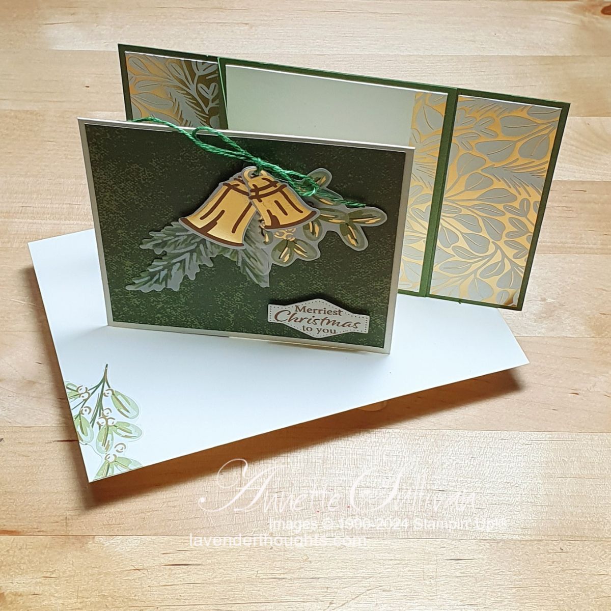Card 2: This Double Decker Z Fold only uses the Season of Green & Gold DSP – again with die cuts. The sentiment is from another Online Exclusive set – Greetings of the Season.