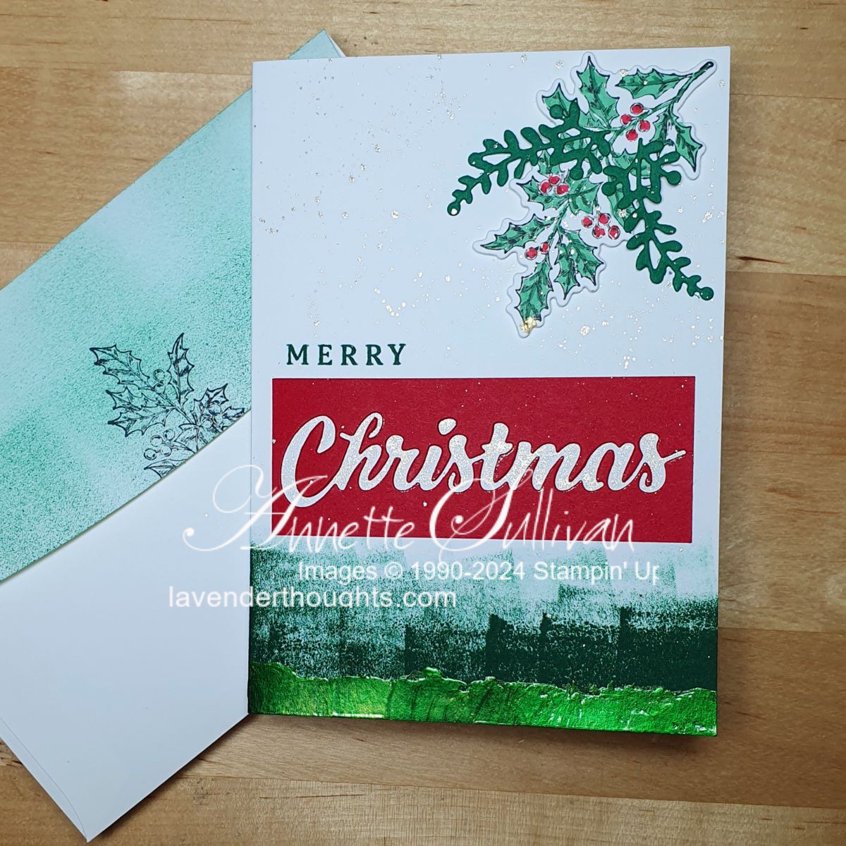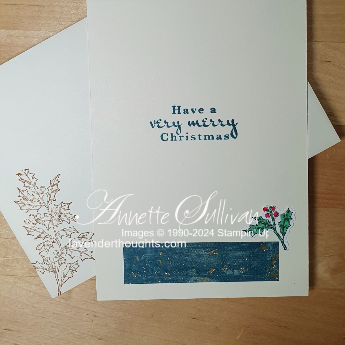 - This one uses the holly image from the Sentimental Wishes set as well as some die cut sprigs.