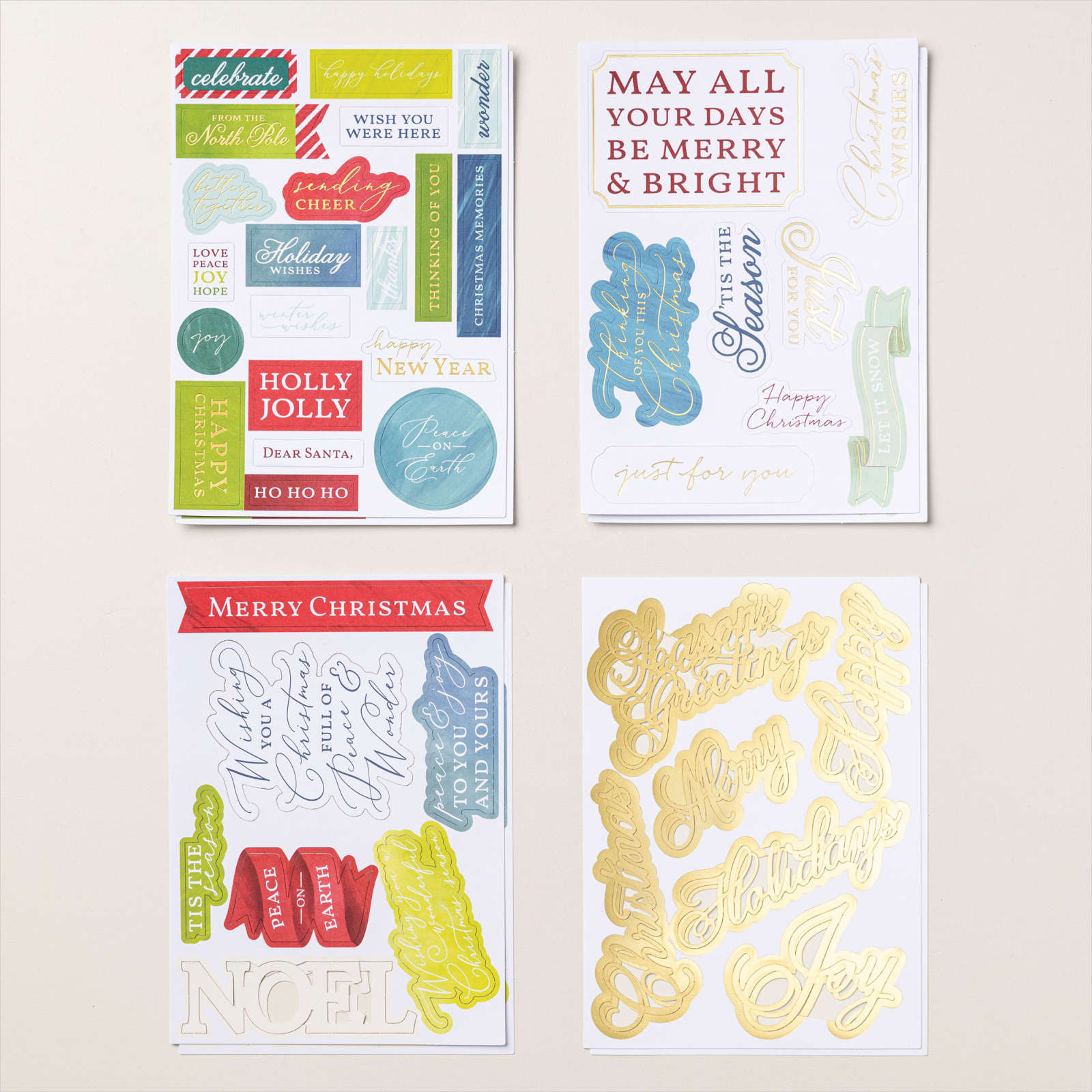 Here are the three Ephemera Packs ($16.75 each) – Tags for the Season, Joyful Sayings and Joyful Images. In each pack there are 2 sheets each of 4 designs.