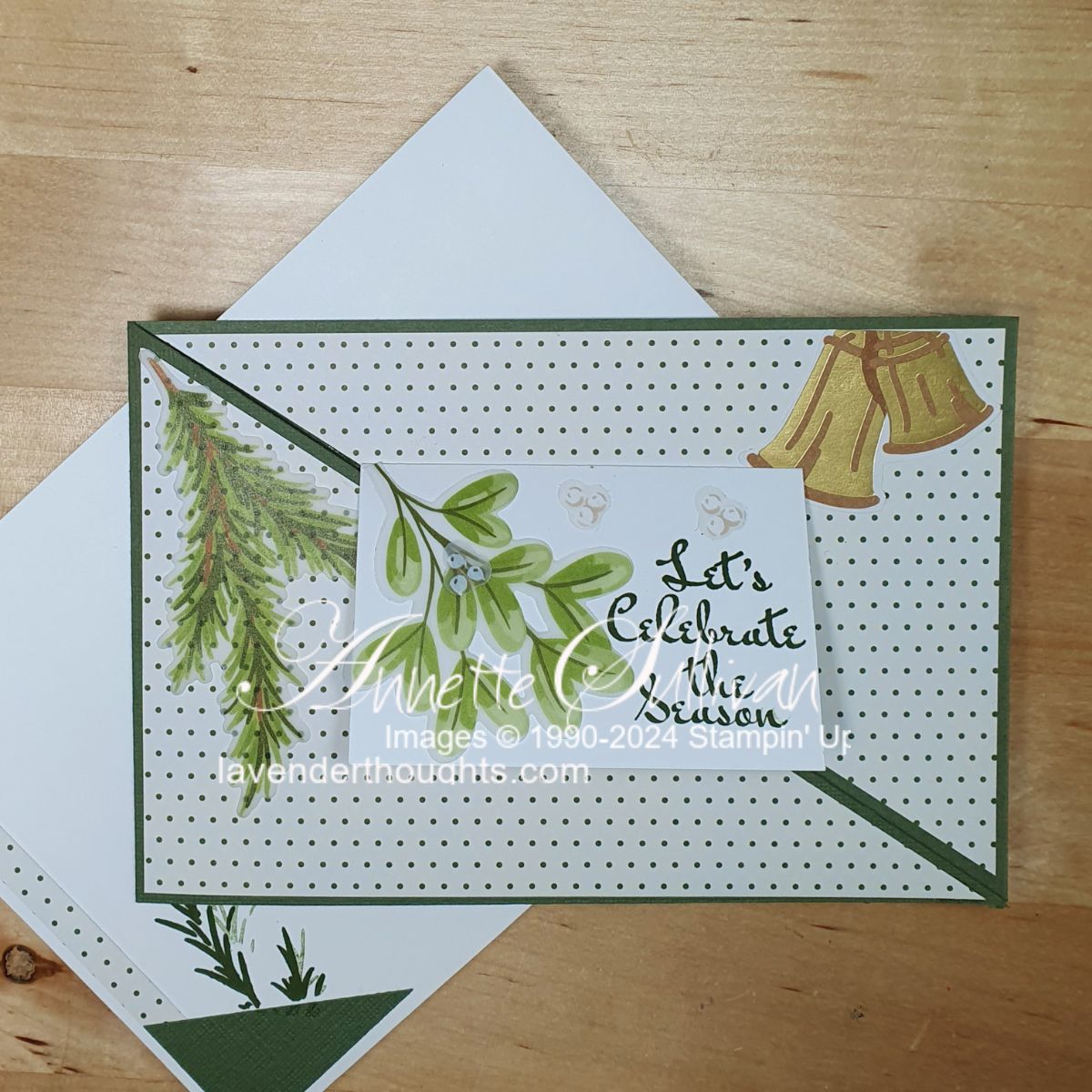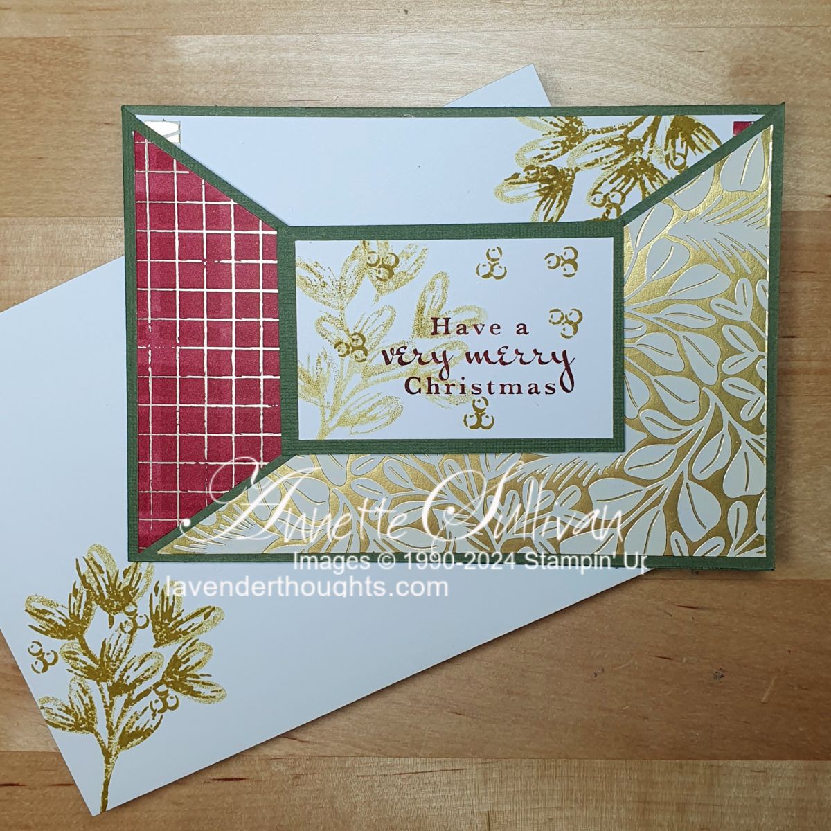 Cardstock used was Always Artichoke (or Mossy Meadow), Basic White, Season of Green & Gold Specialty DSP, Regal Distressed Patterns Specialty DSP. Inks were Wild Wheat (looks like gold!) and Cherry Cobbler.