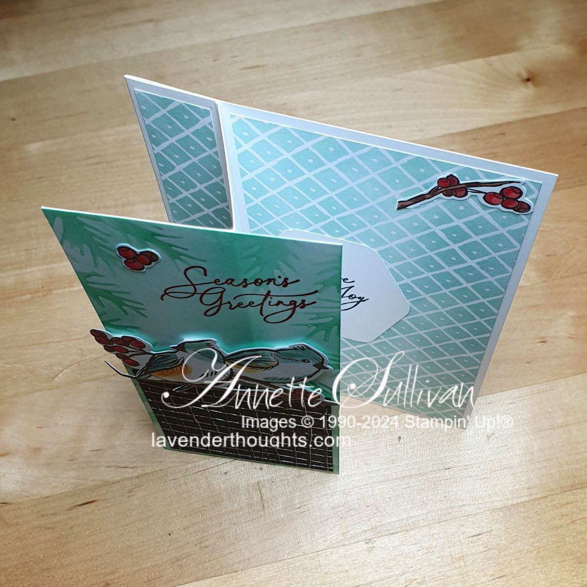 - No, I didn’t colour the birds but die cut them from the Nests of Winter DSP.