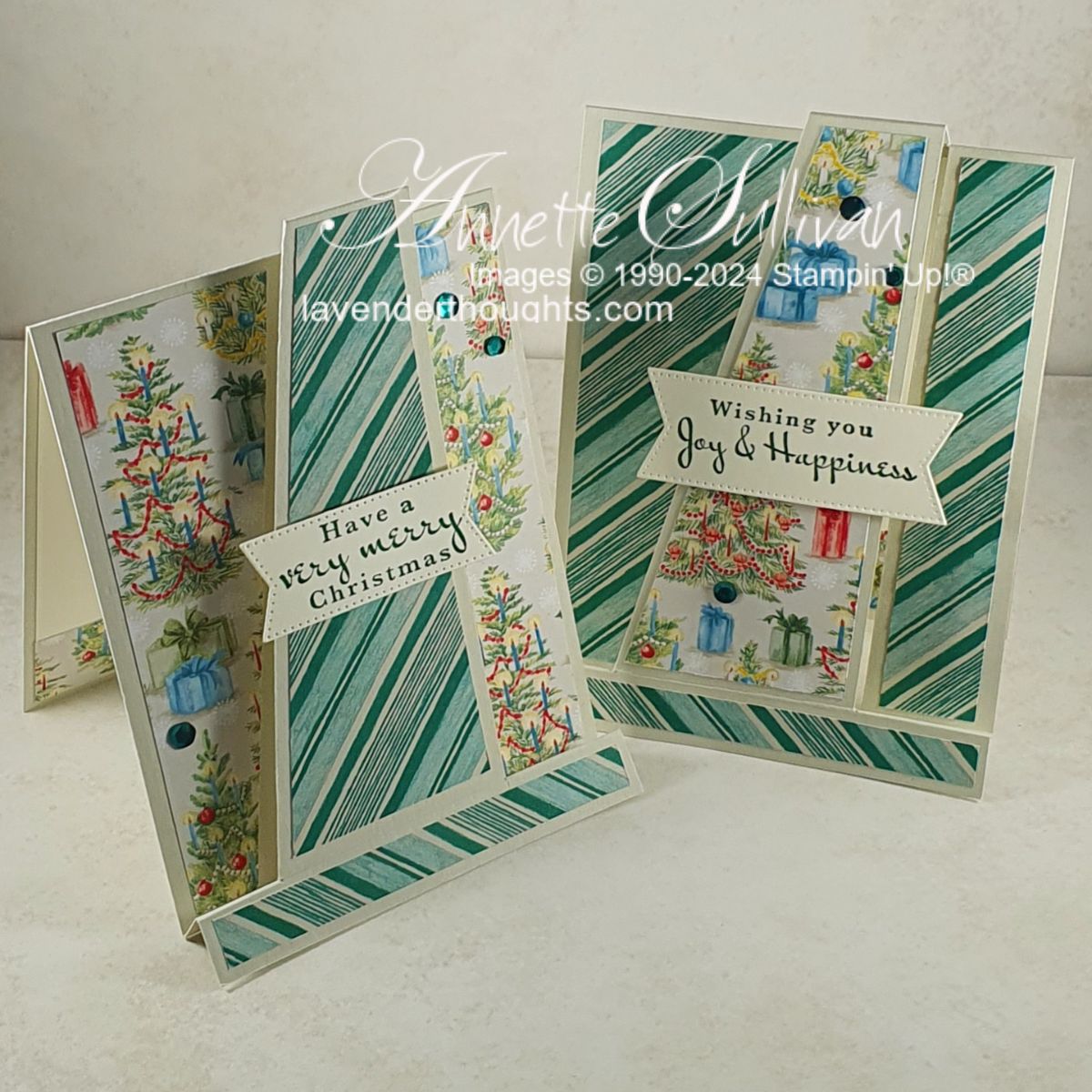 With some careful cutting of two pieces of 6″ x 6″ DSP you can get two cards.