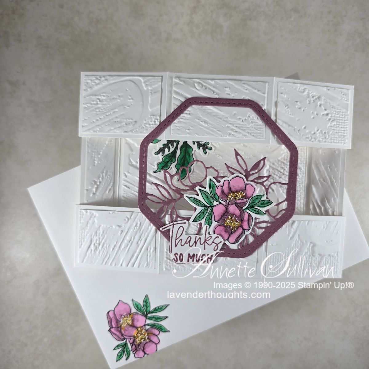 Earlier this week I showcased my portrait version of the Framed Half Hexagonal Pop Up cards – see this post. Today I am showcasing the landscape versions.