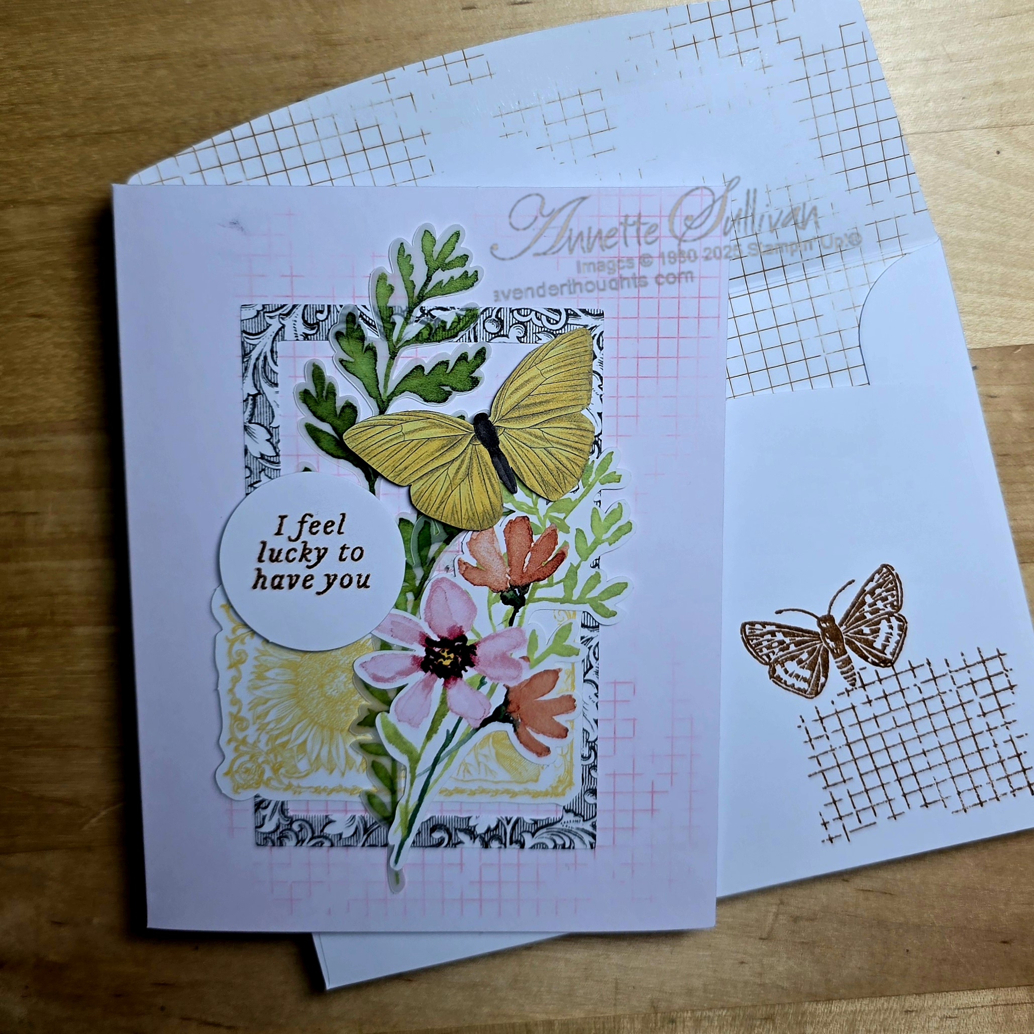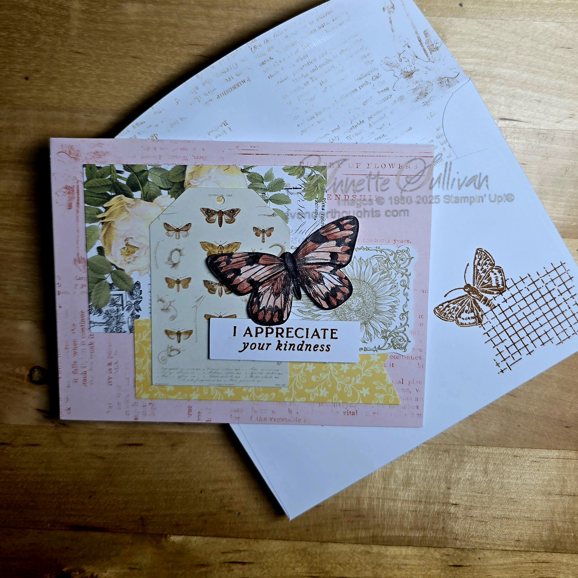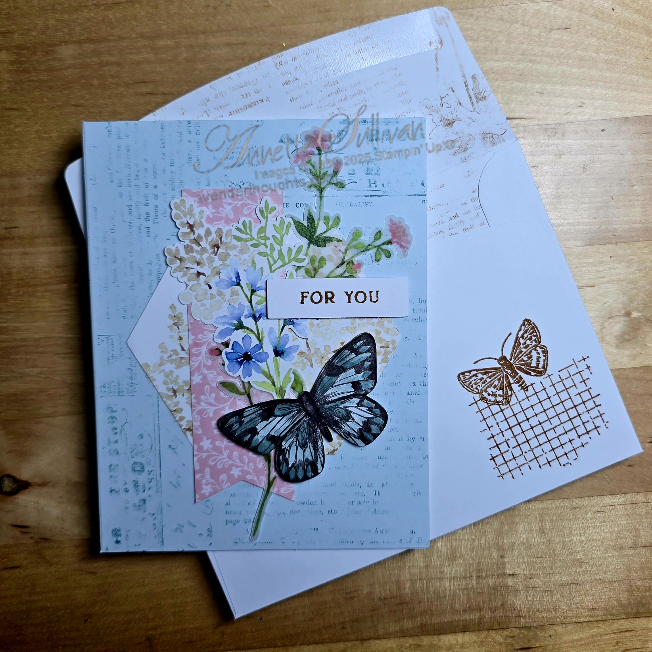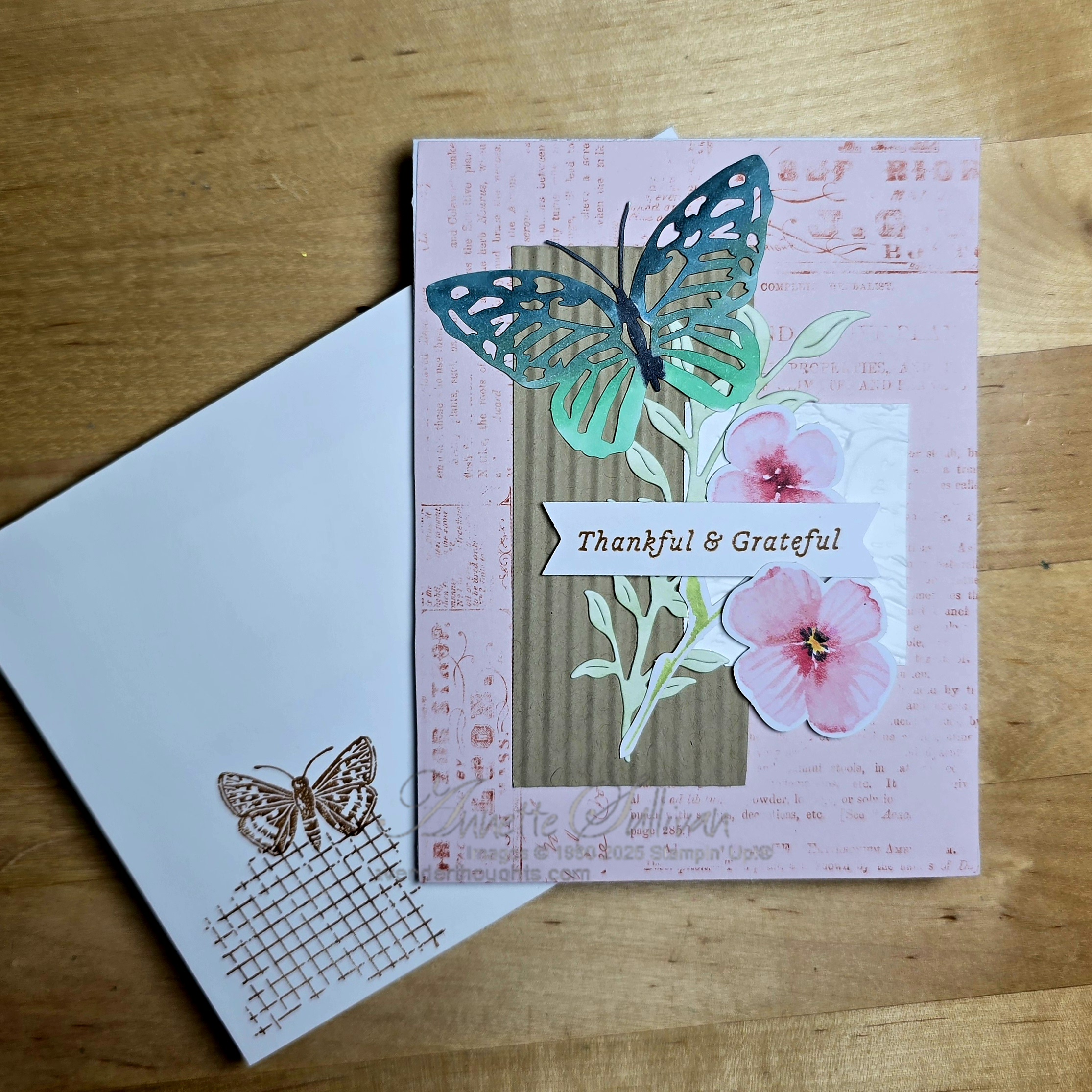 These are the extra four cards that I made using ‘leftovers’ from the kit plus some extra pieces from my stash. The butterflies from the Paper Butterfly Accents (#162612) were coloured with Stampin’ Blends Alcohol Markers. I also used the Mini Corrugated 3D Embossing Folder, the Memorable Blooms octagonal die and one of the Everyday Arches Dies.
