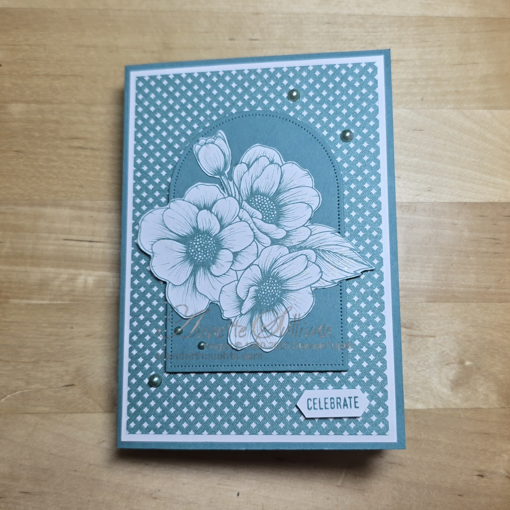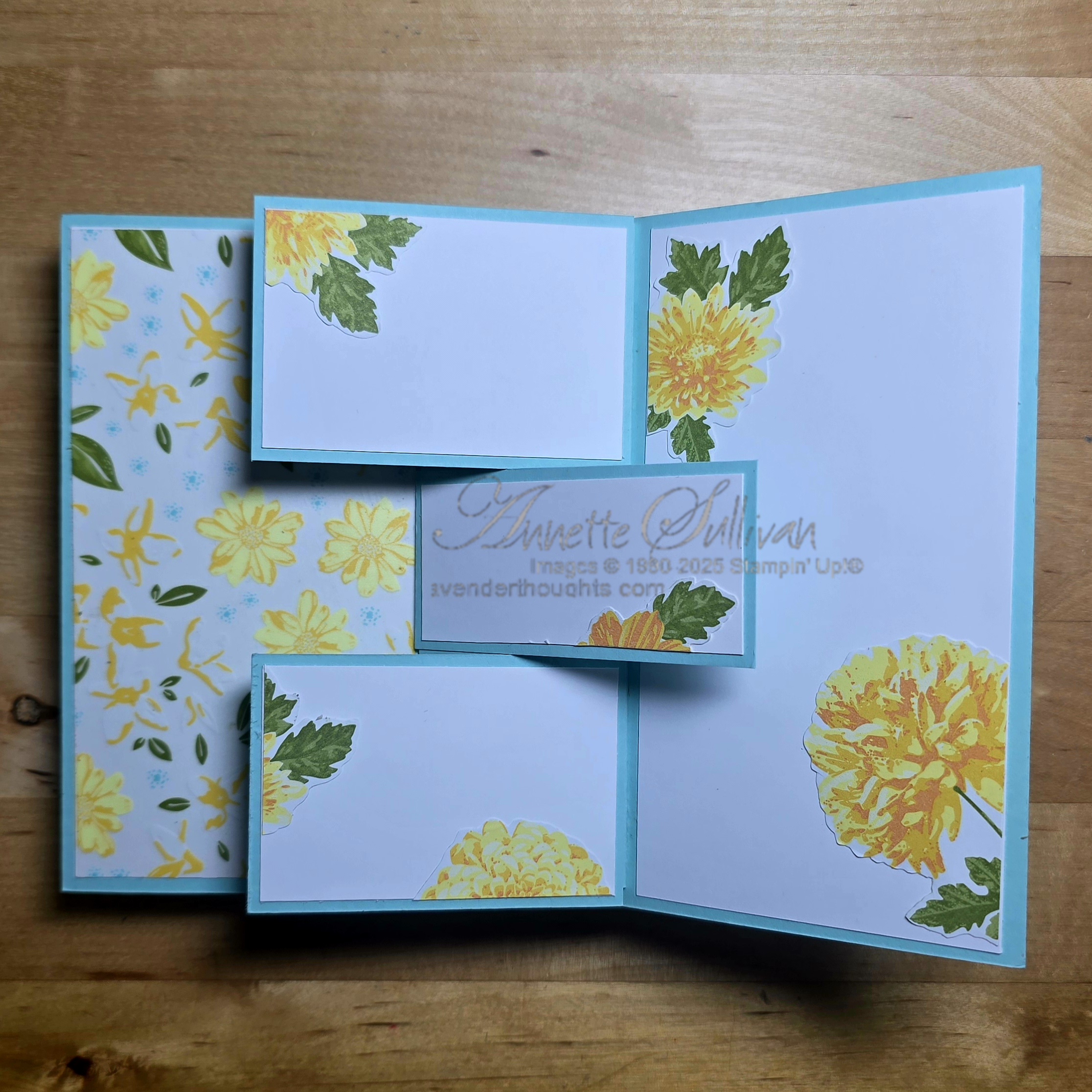 Card 2: The Floral Delight Designer Series Paper is very bright in yellow tones. I found that it looks quite elegant when used with Pool Party as a base.