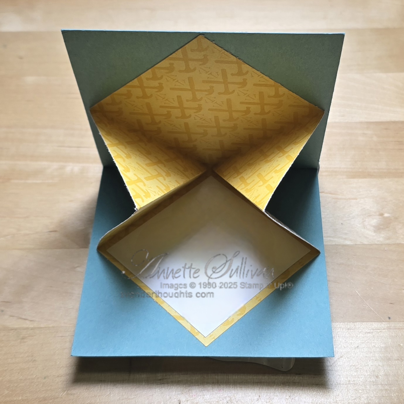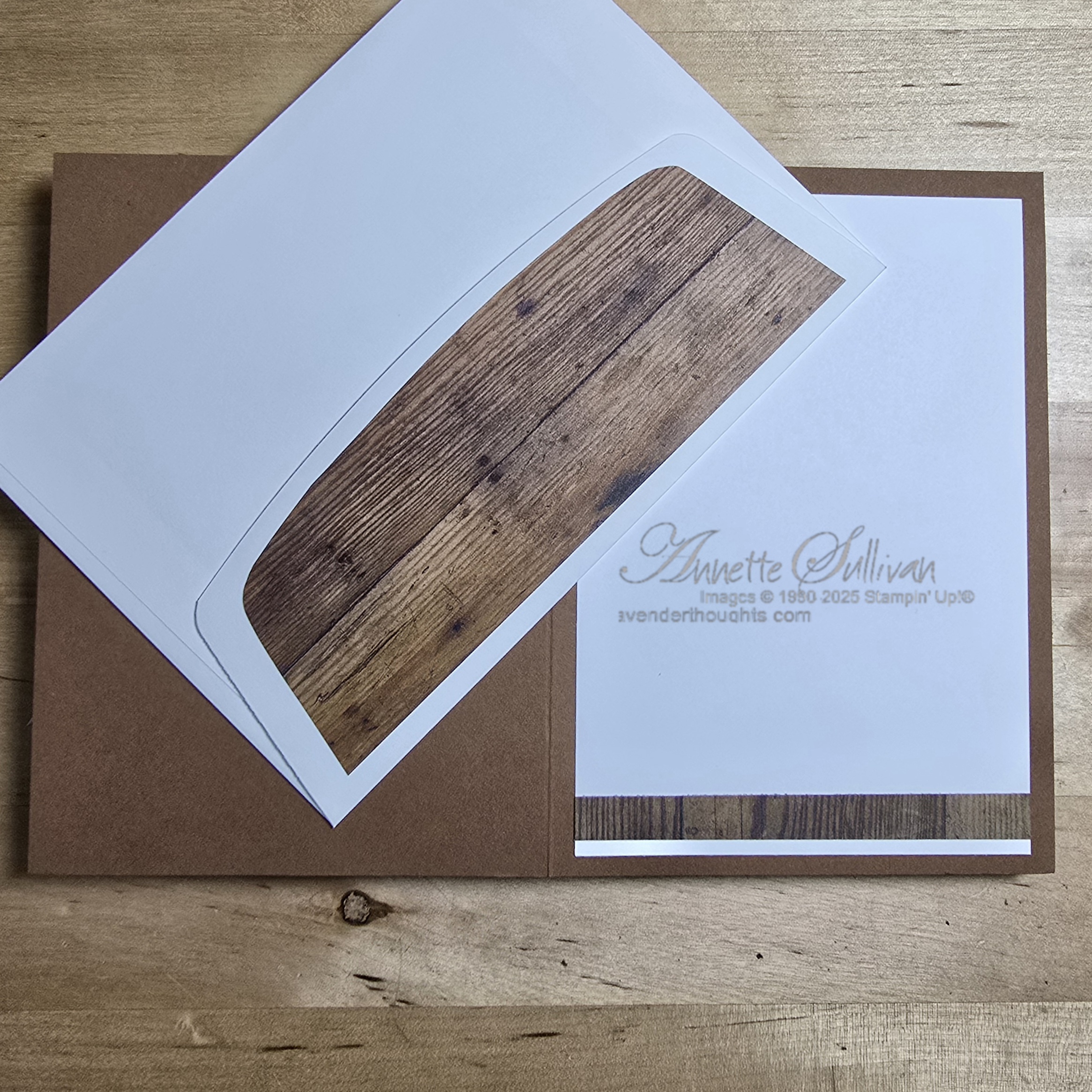 Card 6: A different Z fold this time. Pecan Pie card base and the retired Wood Textures DSP were used. Fold a standard card base in half and then fold the front piece back in half.