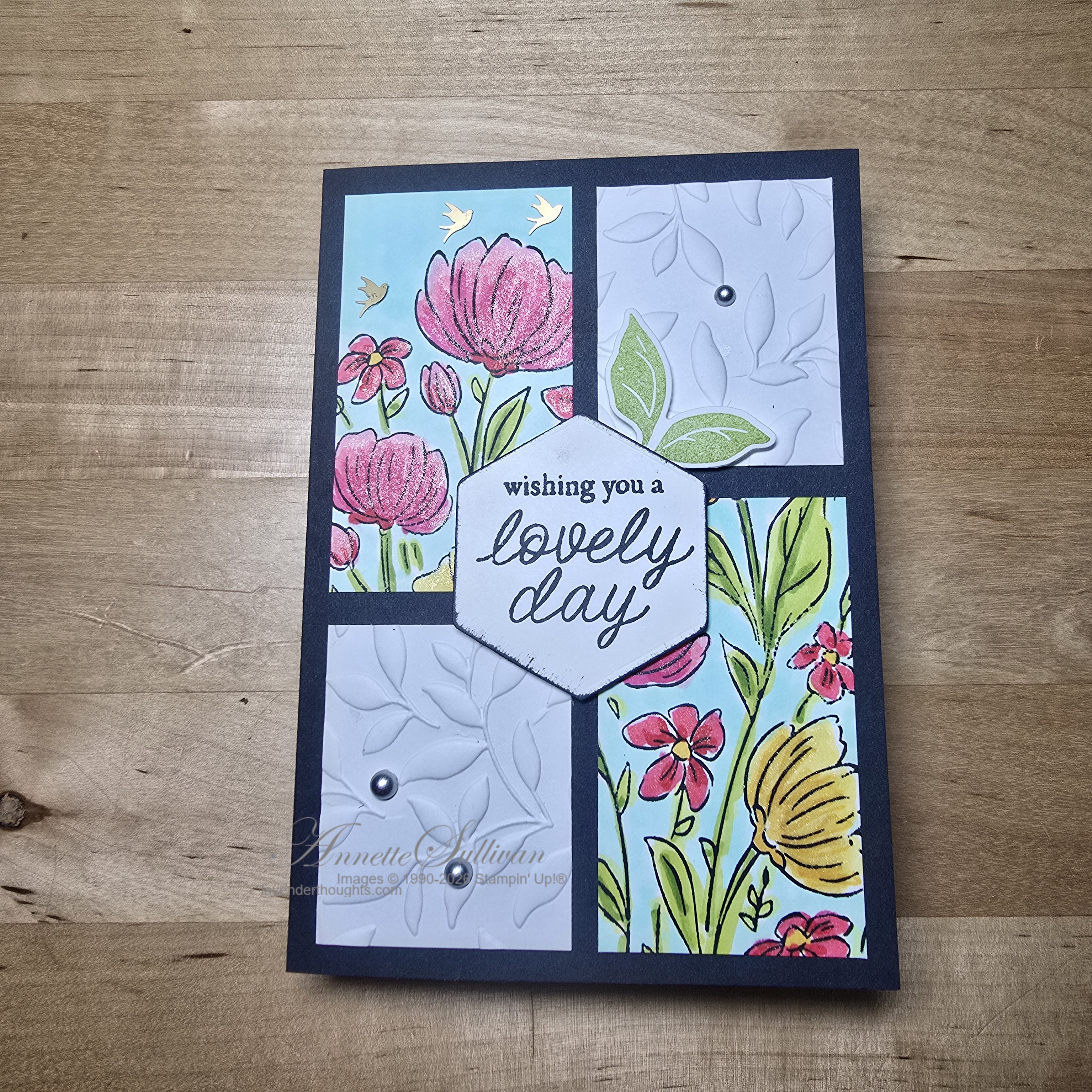 Today I am showcasing the very large Flowers Fair stamp to give you a number of different ways to highlight this pretty image.