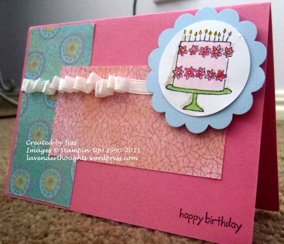 Accessories: White Ribbon (not SU), Dimensionals, 2 3/8’’ Scallop Circle Punch, 1¾’’ Circle Punch.