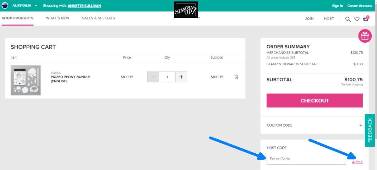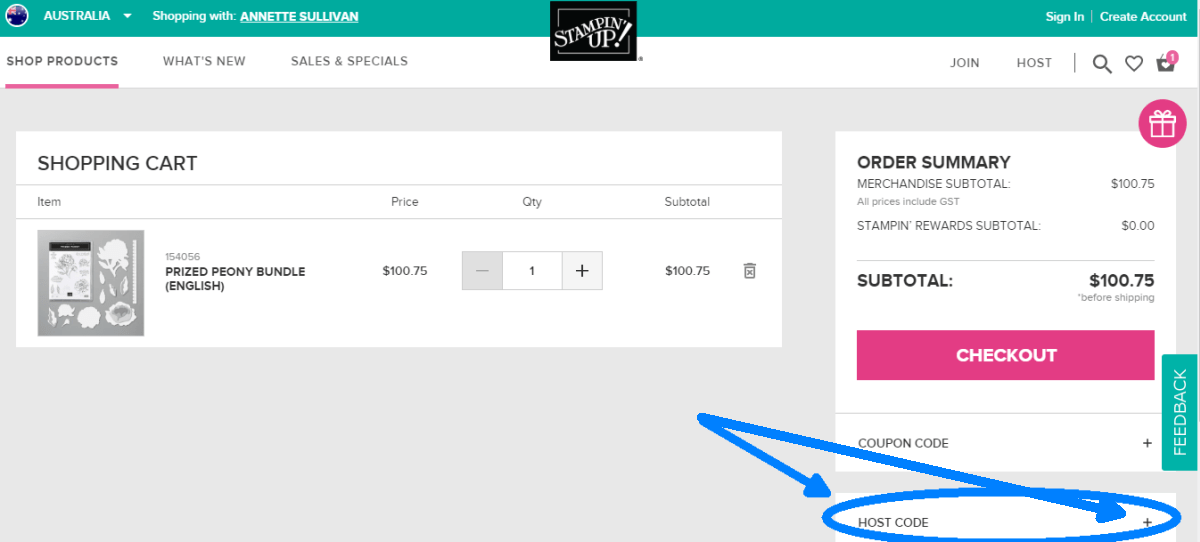 When you order through my online shop and your order is less than $250, please consider further support for me by adding the current Host Code to your order. The current code will be listed in the side bar / or at the bottom of the page and can be added to the bottom right hand corner of your shopping cart page.