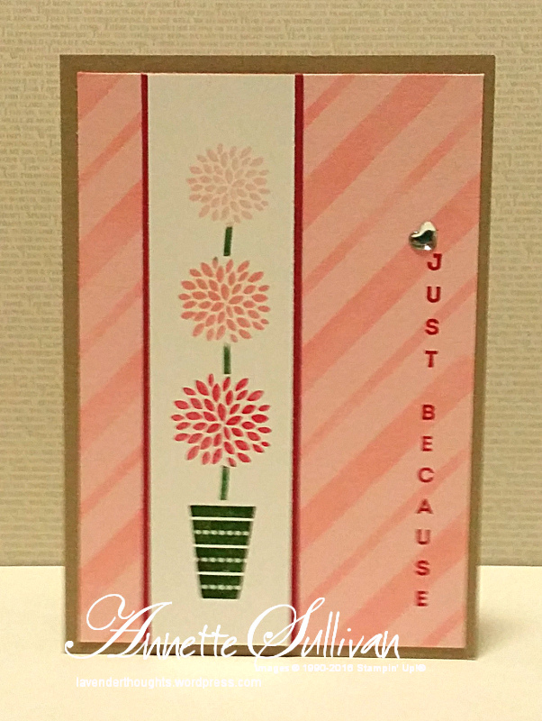 Vertical Greetings Rose Pink Stripes Topiary Share this: Email a link to a friend (Opens in new window) Email Share on Facebook (Opens in new window) Facebook Share on Pinterest (Opens in new window) Pinterest Share on X (Opens in new window) X Like Loading...